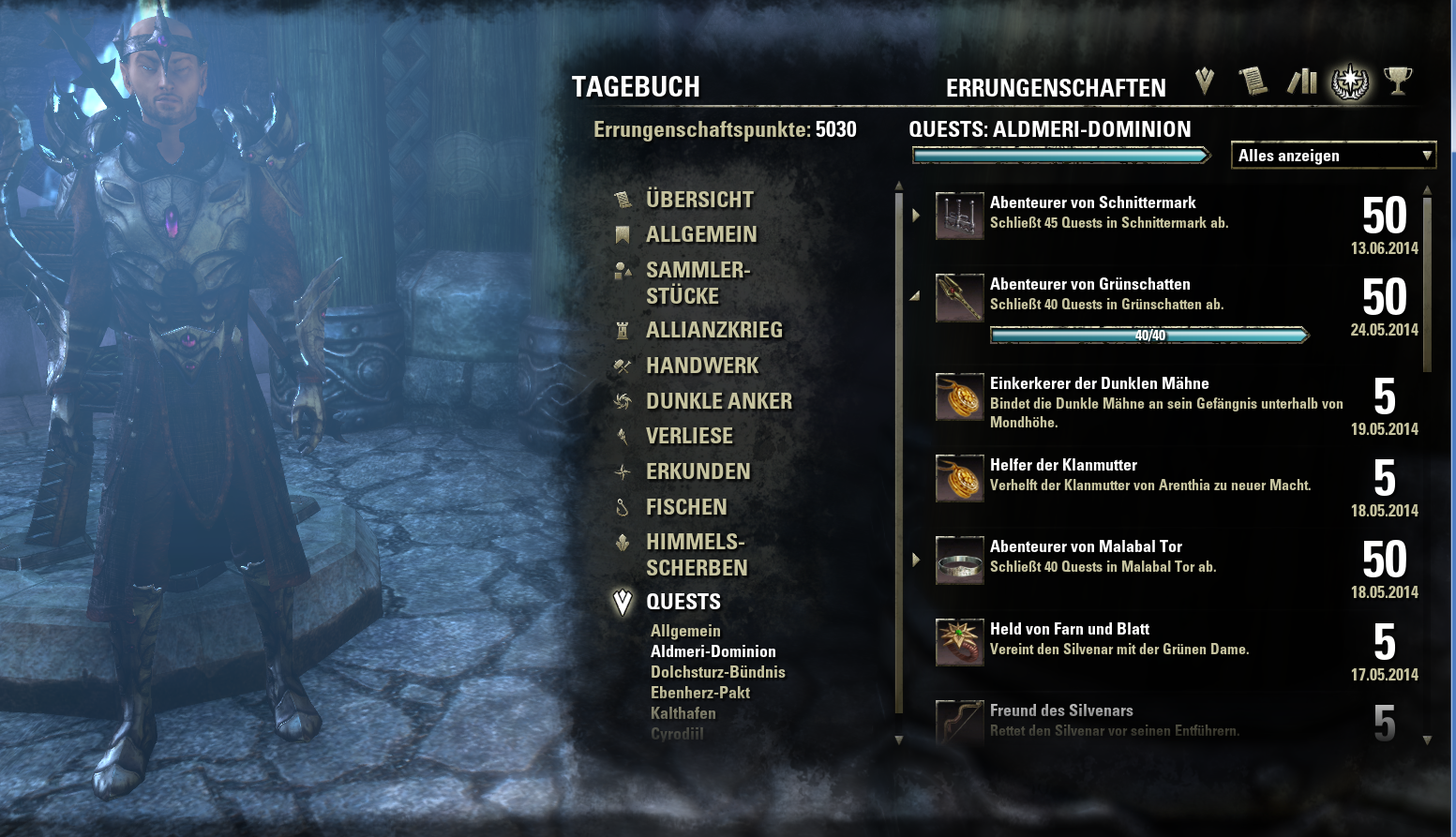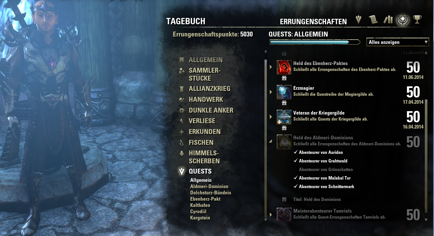 Ich habe folgendes Problem & zwar wenn ich unter Errungenschaften gehe , dann unter -> "Quests " -> "Aldmeri-Dominion" dann steht da das ich die Errungenschaft