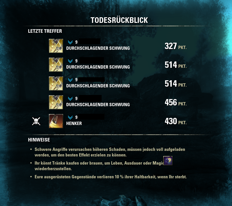 Mir ist auch aufgefallen das man oft vom durchschlagenden Schwung permanent unterbrochen wird bis hin zum Tod.