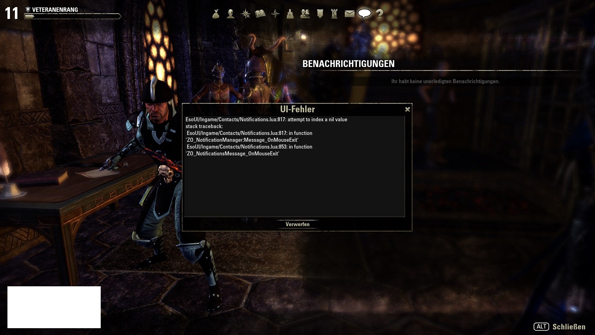 Alle Addons wurden vorher deaktiviert und /reloadui wurde ebenfalls durchgeführt.