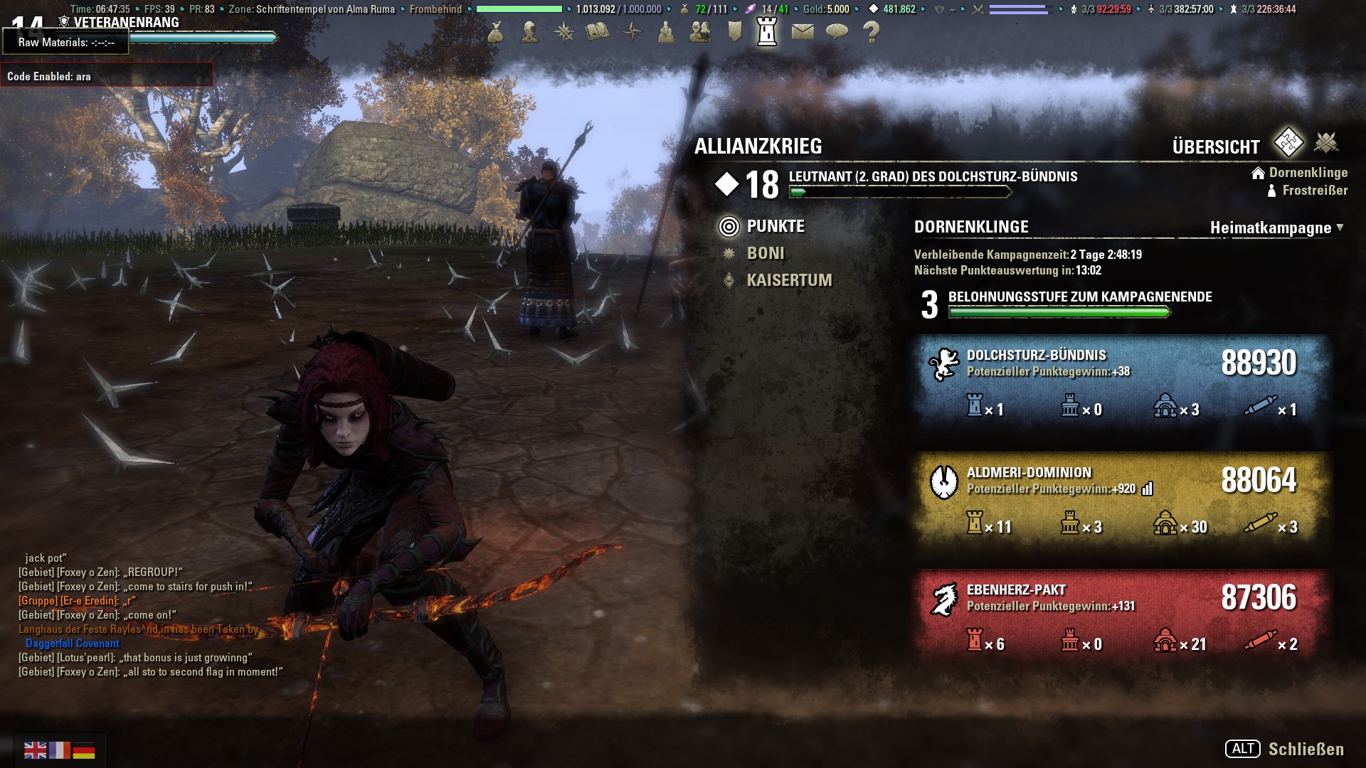 Bei AD gibt es nun mal die meisten, die das System am besten für ihre Zwecke ausnutzen. Das hat kaum was mit Klasse zu tun, dass sie die Punkte bekommen aber nicht verdienen. Und Zenimax schaut immer nur zu, wie bei allen Problemen in Cyrodiil. Sie haben die besseren Buguser und Exploiter, und sich dann noch als die Besseren aufspielen! *lach Richtung @Torsten1964‌