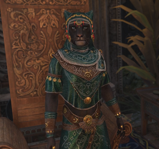 Ist es eine Montur, ein Handwerksstil oder was auch immer, ich habe keine Ahnung. Einziger Anhaltspunkt ist ein Screenshot von "Khamira in her regal attire". Ich habe immer mal wieder weibliche Chars in dem Outfit gesehen, die waren aber immer zu schnell weg, um sie anflüstern und fragen zu können. Also versuche ich hier mein Glück