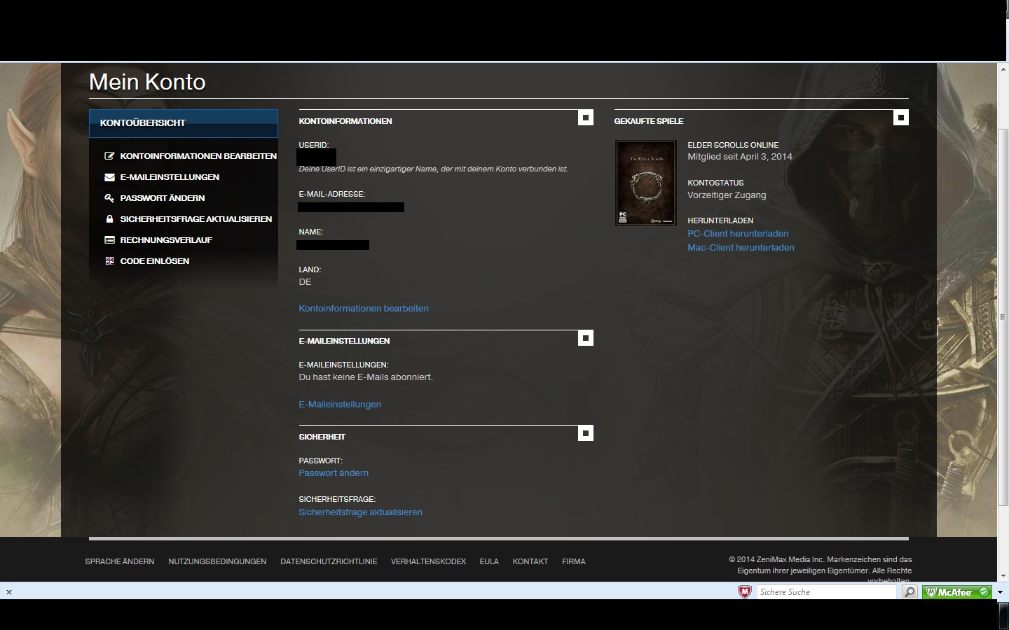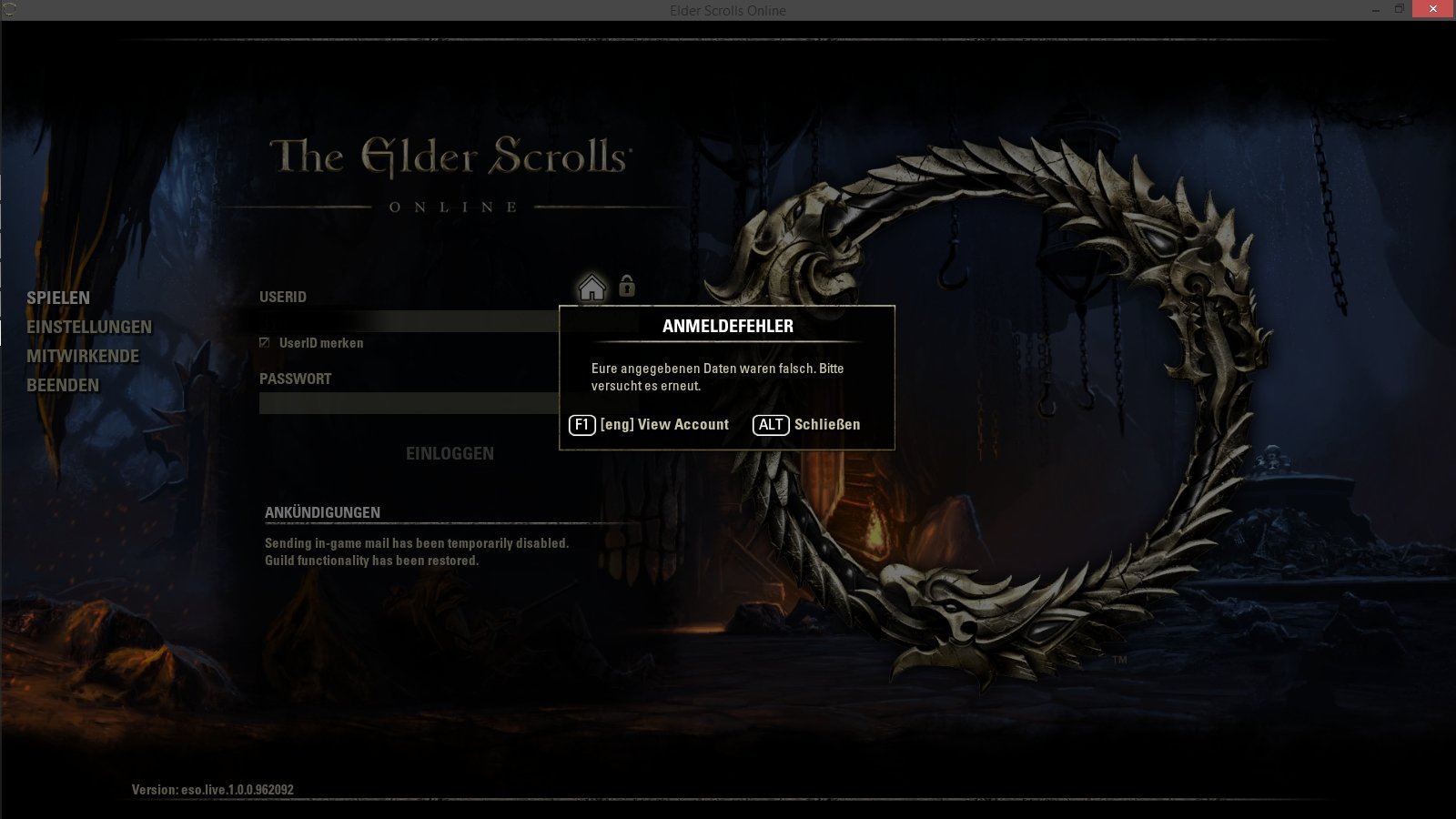 Anmeldedaten falsch --> in mein Profil elderscrollsonline komme ich aber