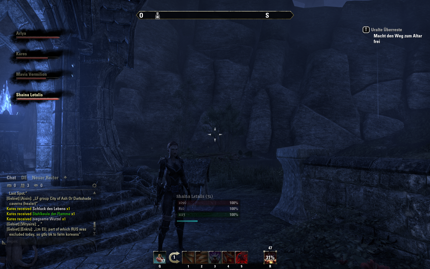 Ich habe seitdem ich in einer Quest nicht weitergekommen bin und diese abgebrochen habe einen Grafikfehler. Ich laufe jetzt seit 5 Tagen mit bläulich, schwarz-weißer Grafik durch die Gegend, was dem Spielspaß doch sehr abträglich ist (im Anhang ein Screenshot).