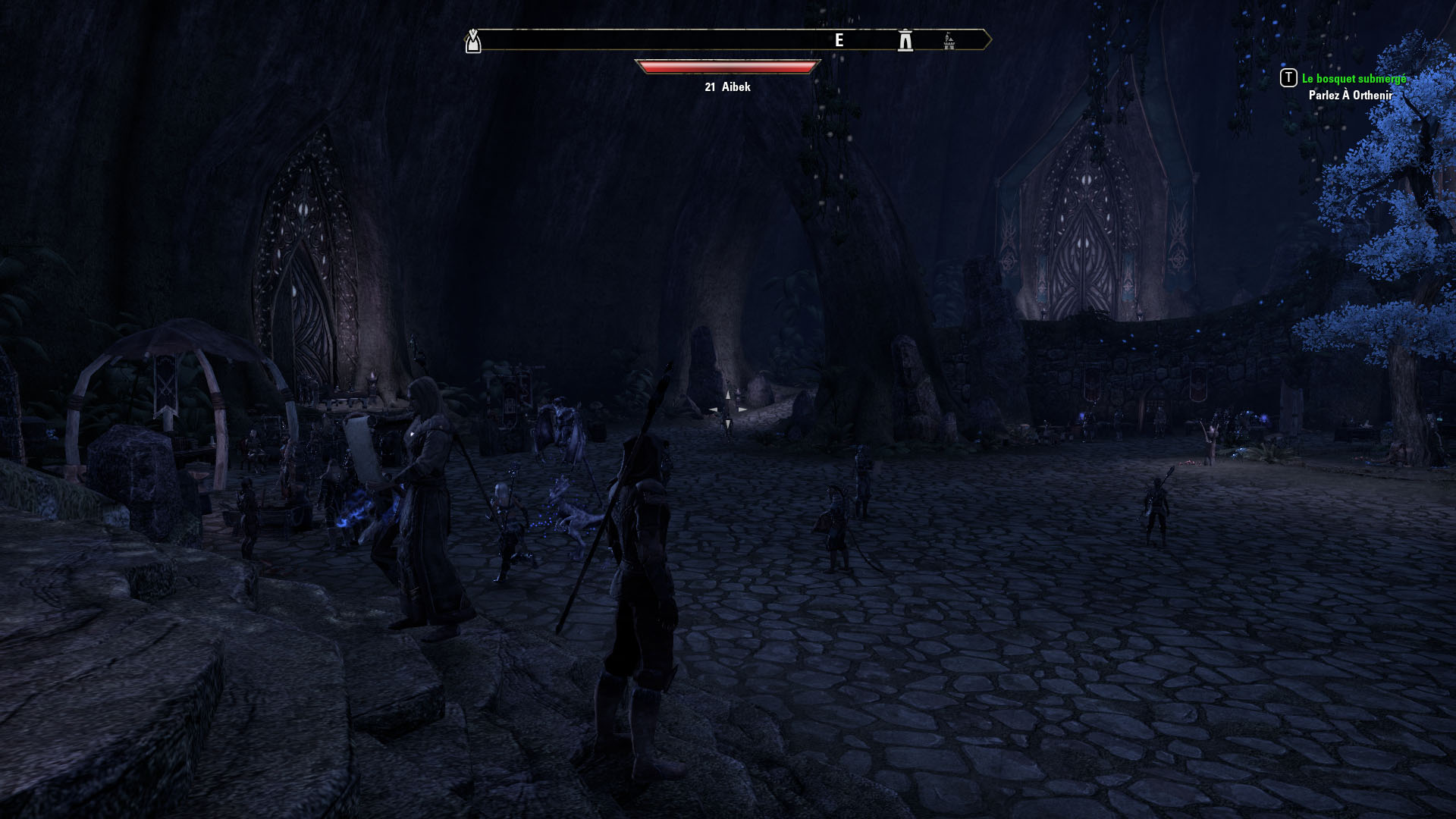 At first, I thought it was night in game, but after a couple of days of this, I figured something was wrong. It cannot be ALWAYS night. Here's how it looks for my Aldmeri mage (exterior and interior which should not be affected by a "night" effect):