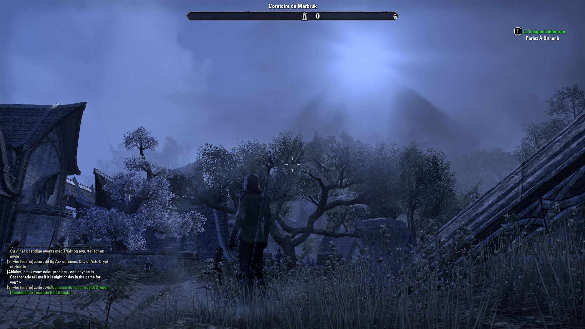 Here's what happens: when loading my mage character in Greenshades or Grahtwood, I first get a black screen with all UI display in full colors on top of it, then after a couple of seconds, the game image loads with all colors washed in shades of blue (funny thing is it also loads unsheathing its weapons for some reason but I'm not sure it is related). Only the game display is washed out, the UI is fine.