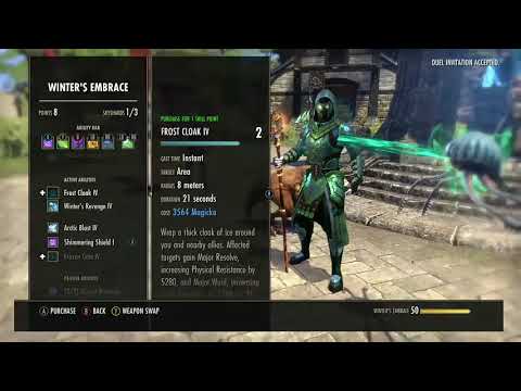 Flex: This slot can be defensive with Elusive Mist, Living Trellis, or Shimmering Shield. Mist is typically used in B.G.s where combat is secondary. Living Trellis provides great heals for cheap and access to Major Mending nearly all the time. Shimmering Shield is absolutely fantastic against Magicka Sorcerers or Magicka Night Blades, almost gg.