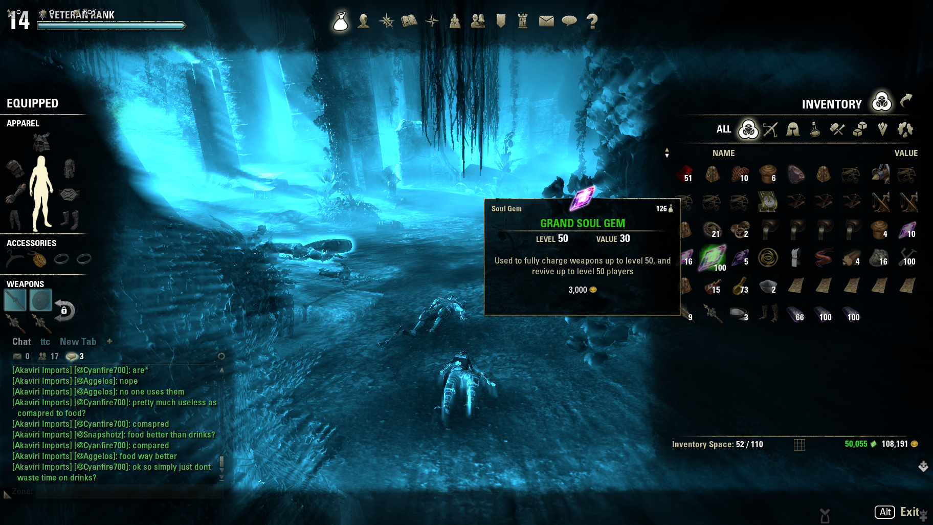 I was not able to use my soul gems to resurrect in game due to the fact that they now list "used to resurrect players up to level 50"...