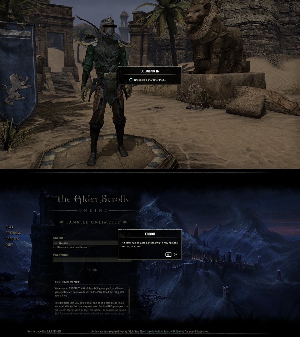 https://youtube.com/watch?v=4MwJOnleriMajdawson18ub17_ESO wrote: »My internet connection somehow miraculously disconnects ONLY when I'm logging in or during a load-screen yet works seamlessly in high speed out of game... what could be causing this disruption?
