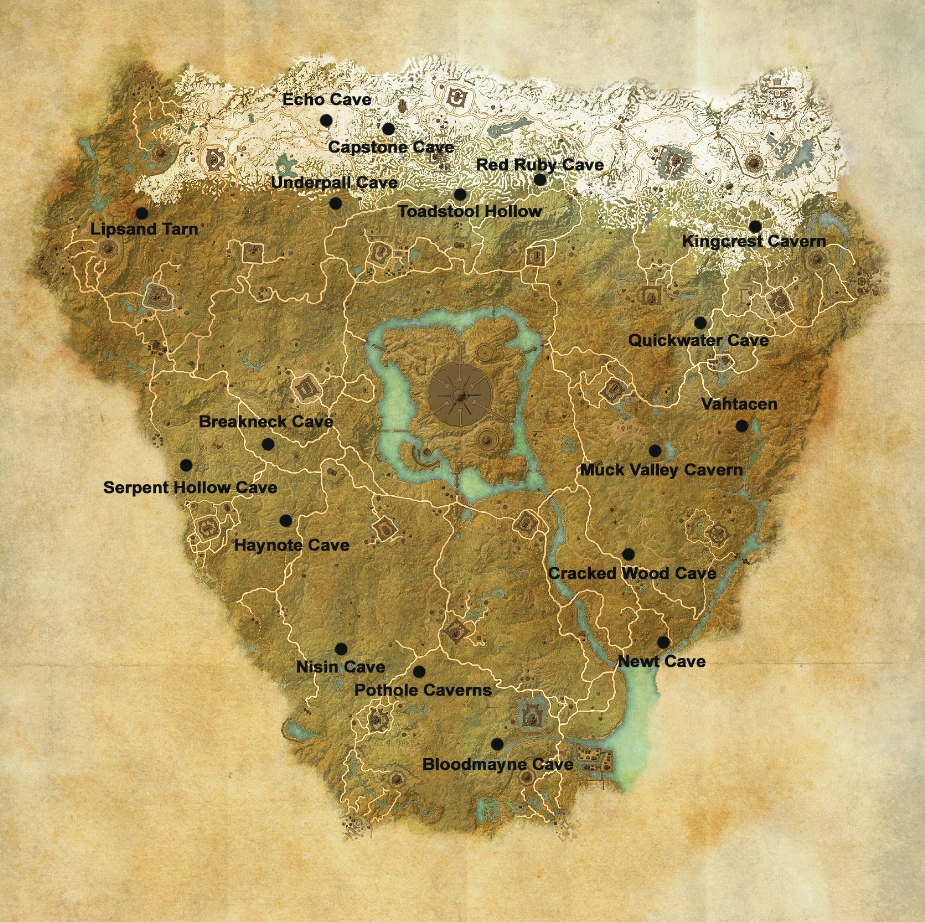 3. Start with your home alliances caves. Here is a great, interactive map. Here's a static map if you need it. If your on PC, there is probably an Add-on for that. If you're Xbox1/PS4, then use the urls I posted. When your in Cyrodiil-- your map of Cyrodiil won't show PvE locations unless you are at the alliance wayshrine. Hence the links to help show the way.