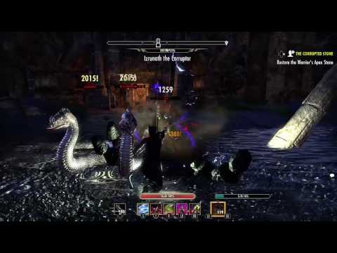 When the patch came that made the Craglorn quests "Solo Friendly", I made a mental note thinking "Huzzah! I can finally Quest there." since I'm pretty much a loner. Though it mostly fell to the wayside for a very long time as I made other characters, did a ton of PvP here and there etc. Well lately I've been on an Achievement hunting frenzy with my main StamBlade, and I was in Craglorn doing the Shards and Delves n'such. And I noticed these Group Delves were going pretty well for me on my lonesome. And sooner or later after doing the exploration achievements I just fell into the Quests I've had stored for eons, and resumed the Amulet one, which ended in you getting the guy, lady, and horsey to rejuvenate the Warrior's Apex Stone. Well, standing right in front of the stone was a 700k health Boss.