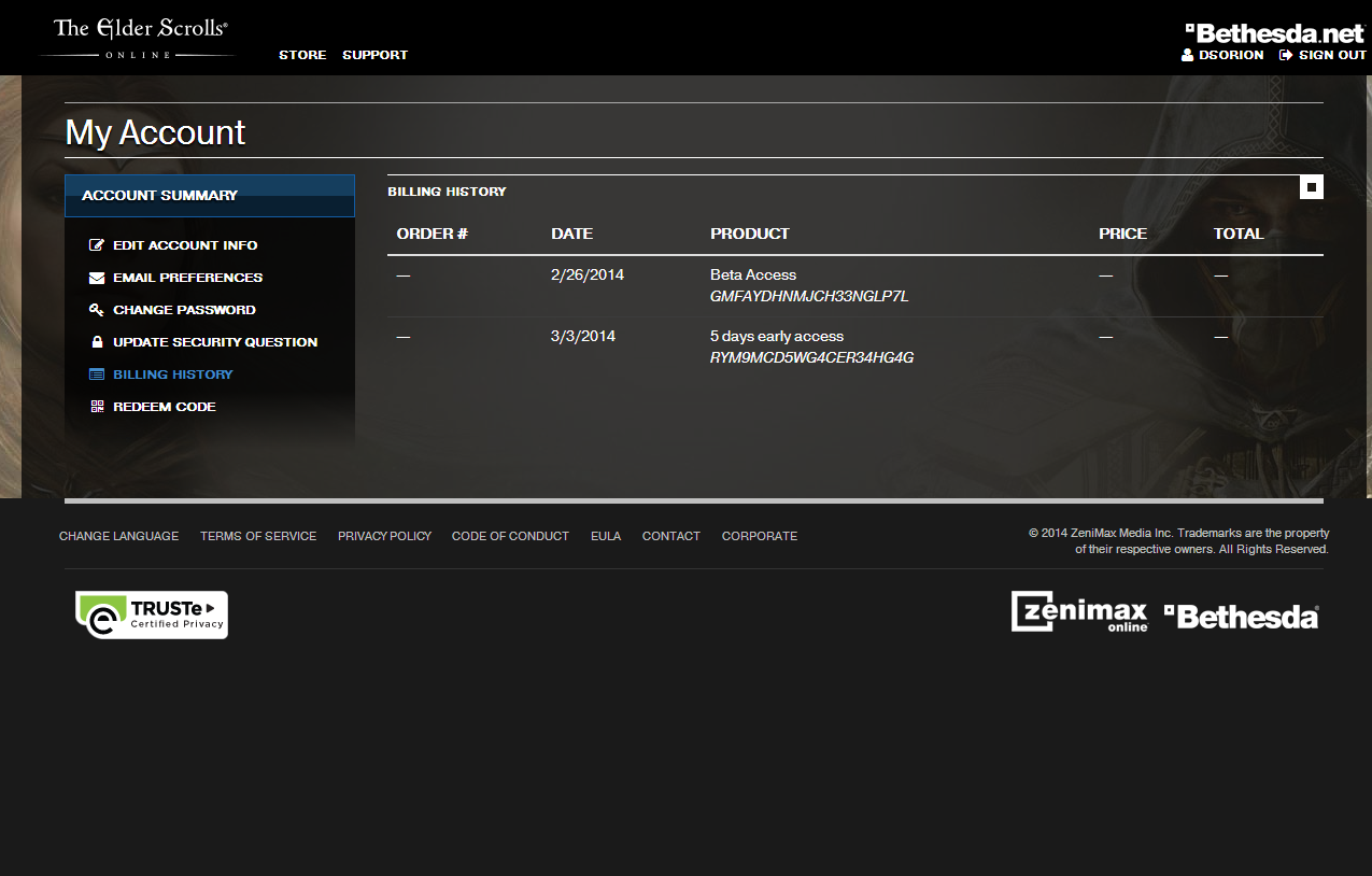 When I enter in The Elder Scrolls Online Imperial Edition Product Code I get the message "You already own this product" yet I can not enter in any subscription info and when I try to enter in the Explorers pack code I get the message "You need the elder scrolls online to use this"