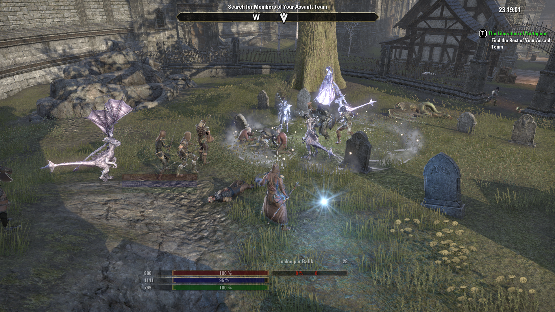 Before this helpful and polite person came on board to help me, the previous advice I got was "You could go to Cyrodil to PVP." After eventually running out of options even with the helpful GM, I just said, "Screw it. I've finished everything in this zone. I will go to Cyrodil and try that." You know what happened? The 2nd quest there (the siege weapons) was bugged.