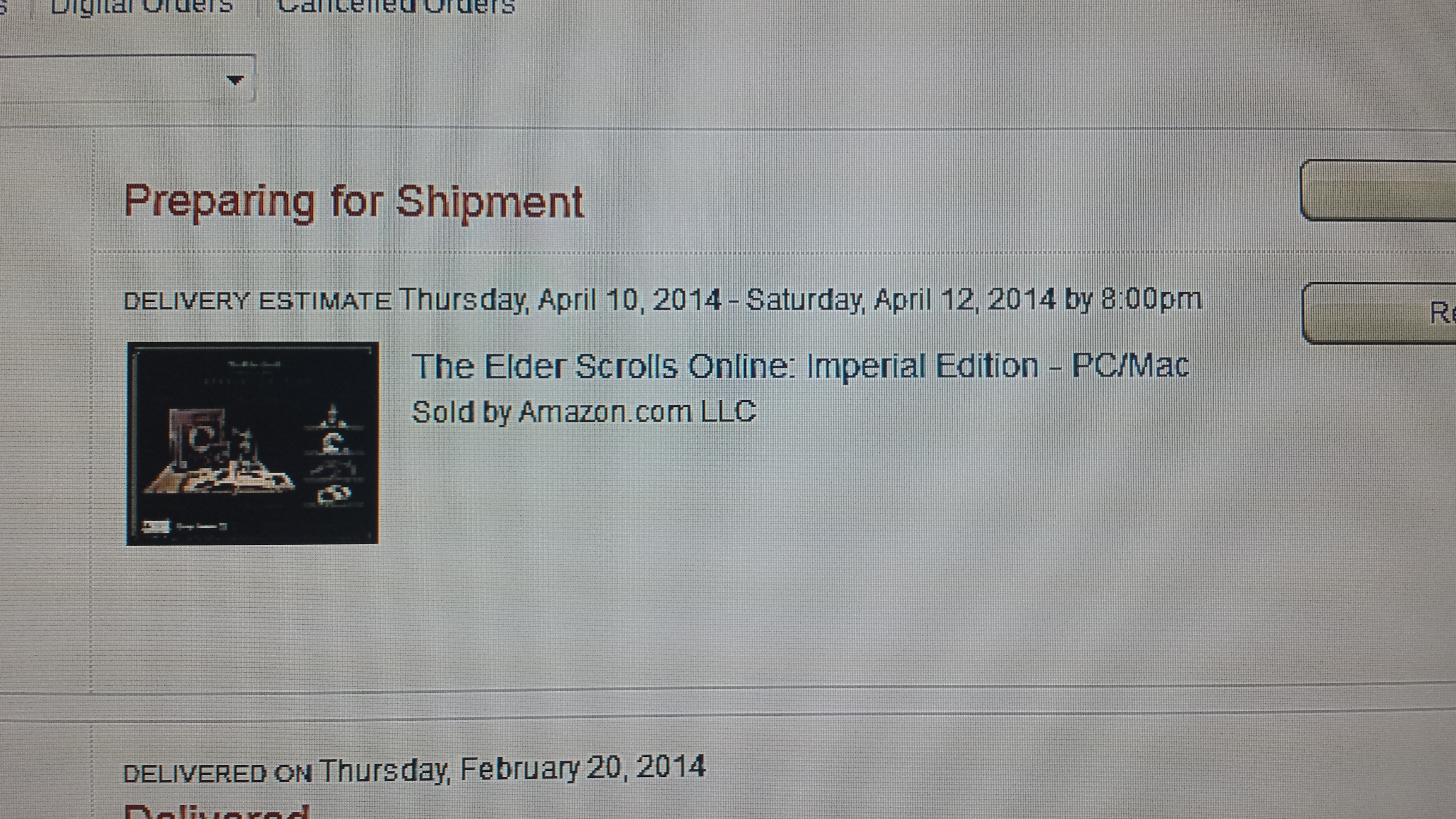 Sorry to hear your are still awaiting the delivery of your physical copy of The Elder Scrolls Online : Imperial Edition (Great choice by the way).
