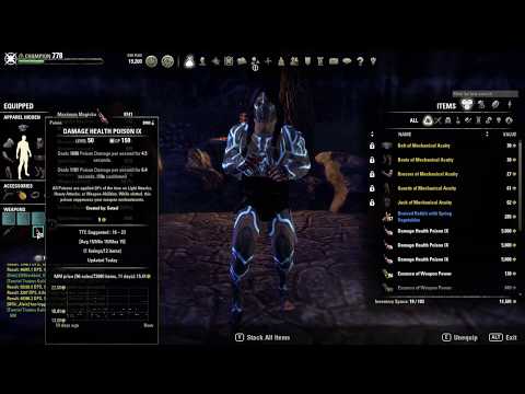 • Gear: TFS, Warmachine, Kraghs, VMA bow, Poison back-bar, Axe/dagger setup (mechanical acuity instead of TFS for dungeons and trials is filthy deeps)