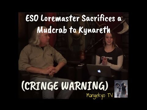12. Loremaster (Emeritus) Lawrence Schick sacrifices a mudcrab on ESO Live. Bonus, it features Jason Leavey ("the Hair") when he was still part of the ESO community team.