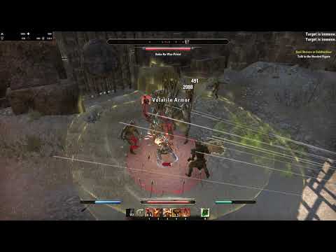 The only skills used doing that were Defensive Posture, Draw Essence, and Volatile Armor. Nothing else, which provides testimony to the strength of the gear configuration. Went into vSS and the mobs there couldn't kill him either.
