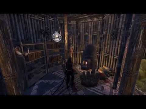 This Argonian house was built for Elara Northwinds contest "A Tiny House". The house is built on 10 Orcish Platforms (Block) and have a small courtyard in front of the entrance. It is first after the contest that the background and the forest around it was created.