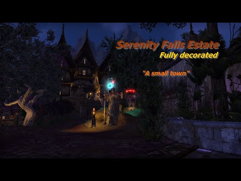 I absolutely love Serenity Falls Estate, as it has big yard and they're easily separated as different "districts", so to say. I wanted to make it look like a small town while serving as my guild's guild hall.